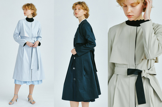 すっきりした見え感のドレストレンチ。ヨーク部分を「ランバン オン ブルー」らしくフリル調に。