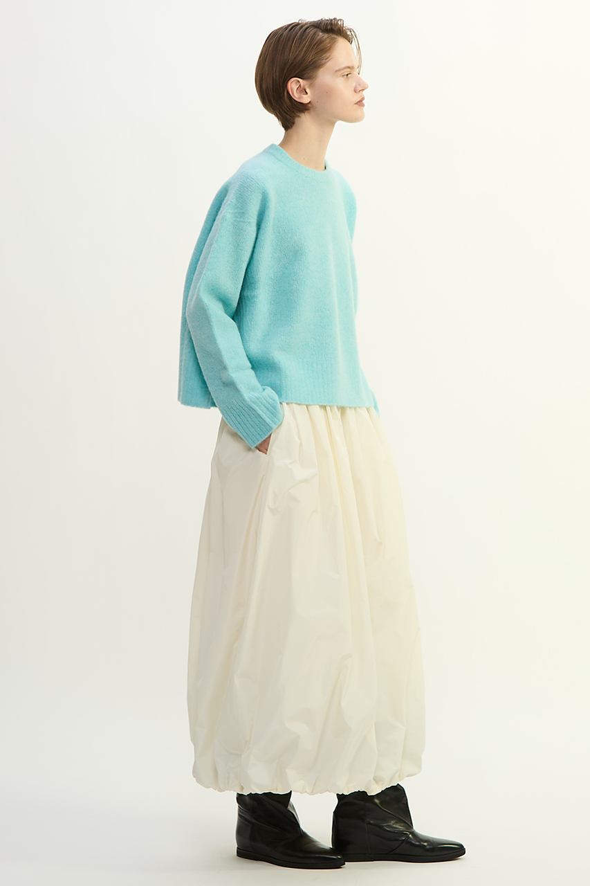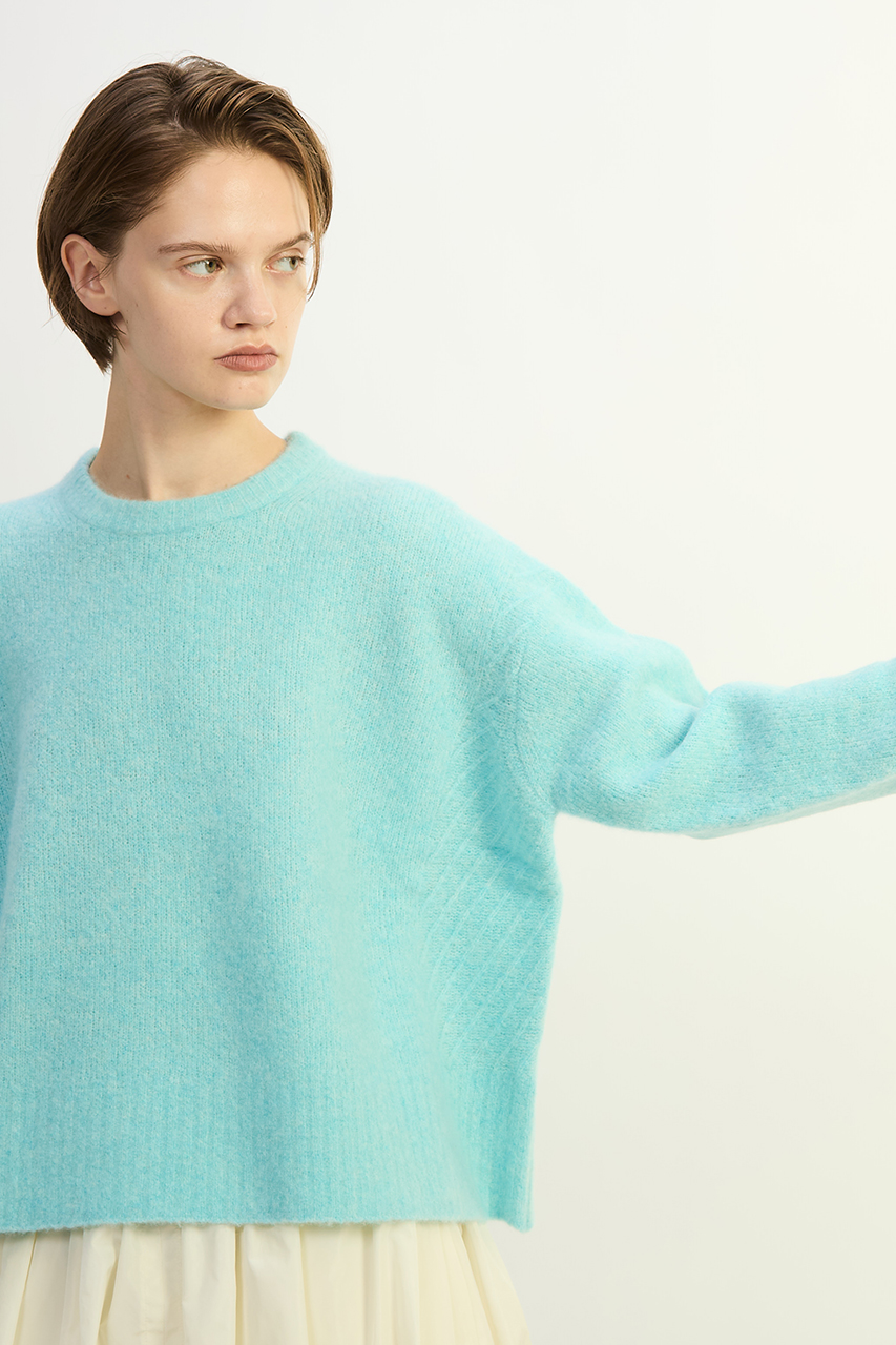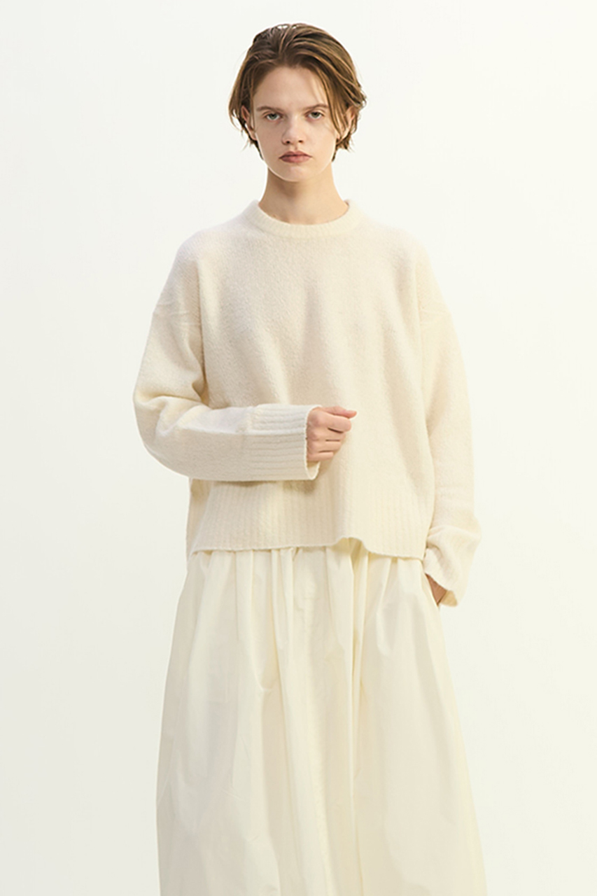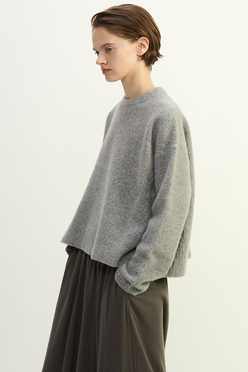スポンディッシュな感触のウール×カシミヤ混セーターは、アウター合わせを考えて設計した今季のレコメンドセーターです。肉厚でもモコモコしにくい生地に、コンパクトなデザインはトレンドを意識せず長く着られます。