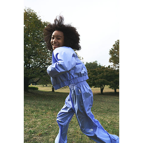 スポーツにもデイリーにも使えるショート丈ジャケットとパンツ。動きやすくトレンド感のあるシルエットに、はっ水加工を施したポリエステルの防風素材を採用。ハリのある生地で立体感を保ち、気温差のある春先にも活躍します。
