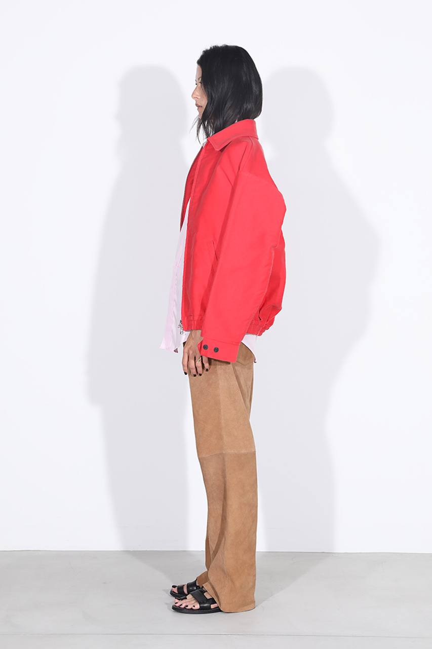 高密度モールスキンを使用し、製品洗いで仕上げることで自然なヴィンテージ感をプラスしたルーズフィットモデル。大きめの襟や立体的なバックタックが、クラシックな存在感を引き立てます。レッドとグレー、それぞれでスタイリングの印象を大きく変えて楽しめる一着です。