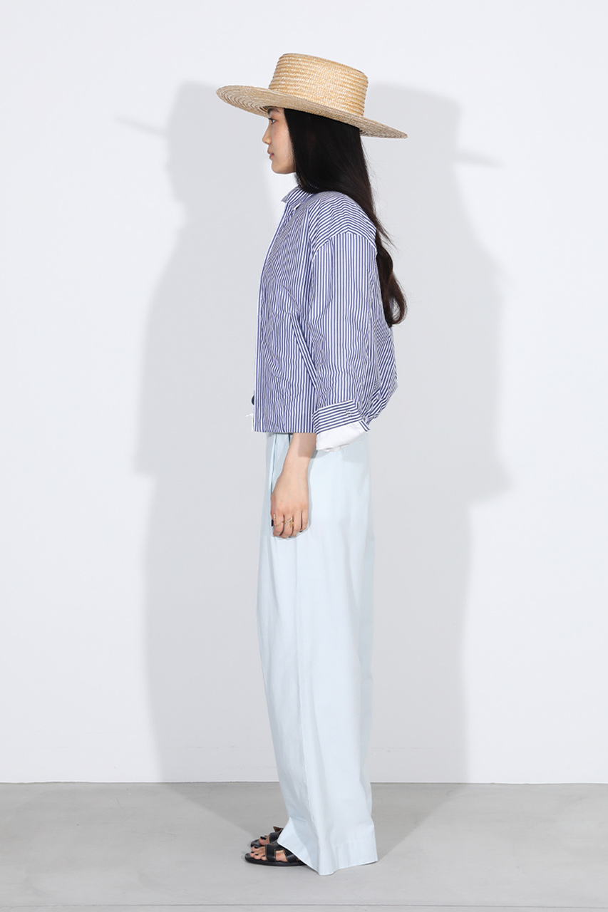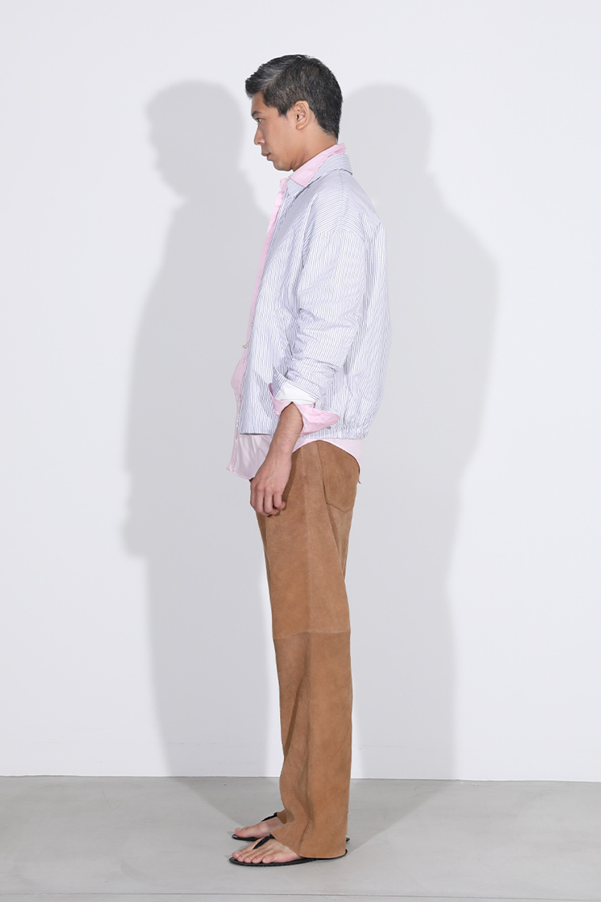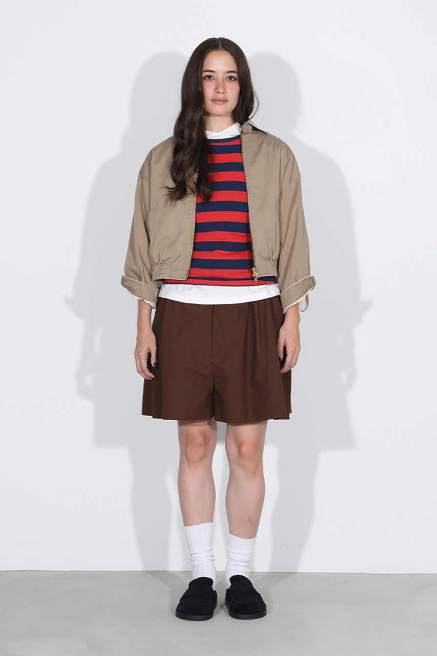 マルチストライプは長綿ブロードならではのハリと反発感を活かし、クリーンなBLUEストライプが軽快な印象をプラス。Wジップ仕様で着こなしのアレンジも楽しめる、軽さと構築的なフォルムのバランスが光るモデルです。