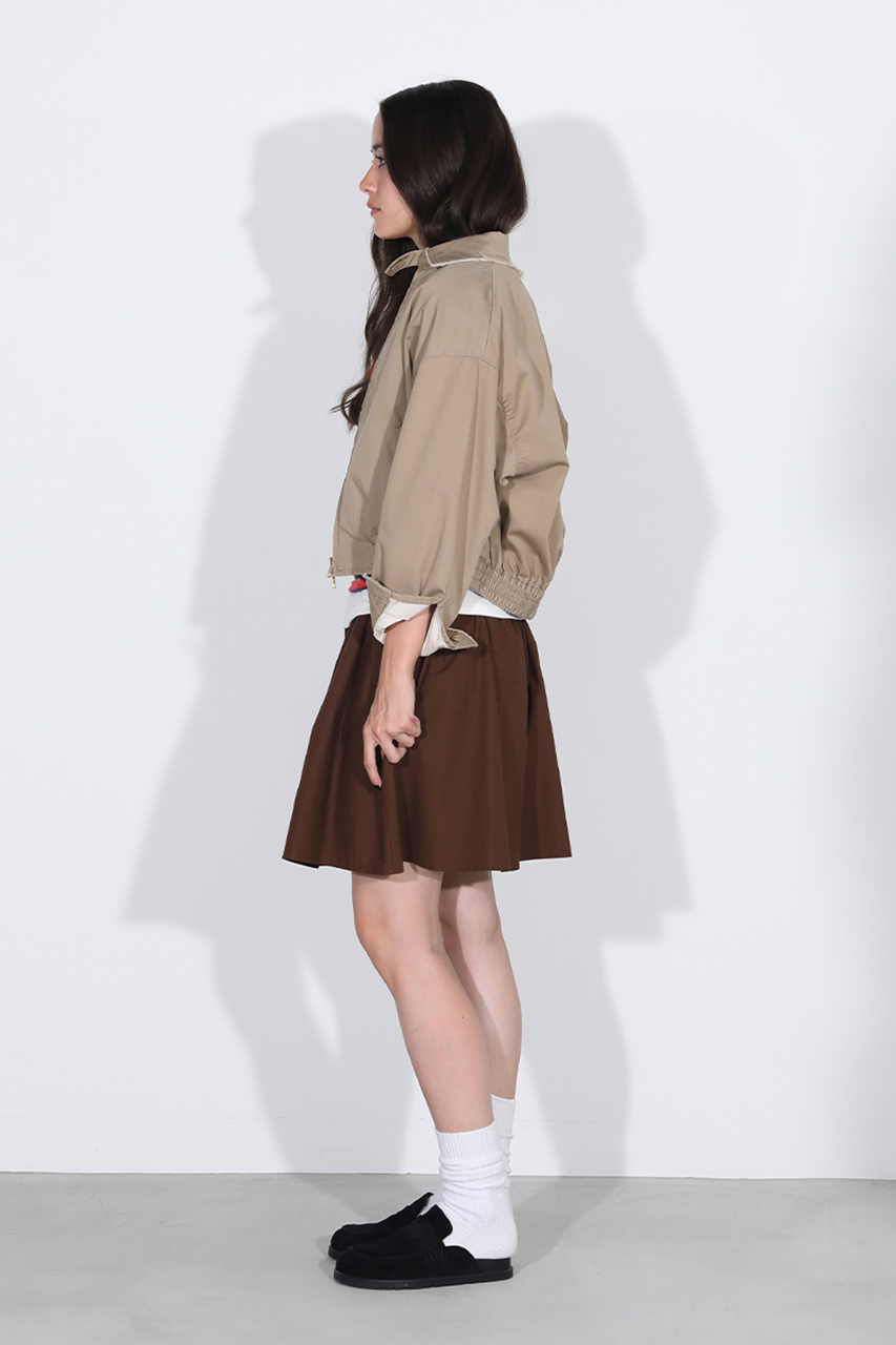 ストライプはマルチストライプのブロード素材を使用した、軽やかさと立体的なフォルムを両立した一着。上品な光沢とふんわりとした質感が、コンパクトなシルエットを際立たせます。
