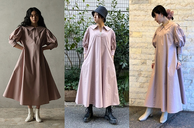 春ムードが盛り上がるダスティピンクのワンピースは1枚でスタイリングが完成する優秀アイテム。ボリュームある袖を強調してとことんガーリーに着るもよし、ブラックの小物をアクセントとしマニッシュな雰囲気で着こなすもよし。あなたの好みの着こなしは?