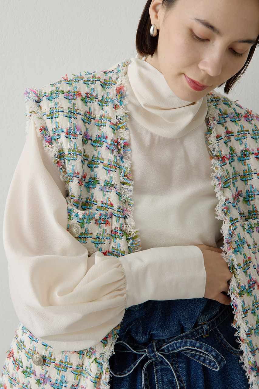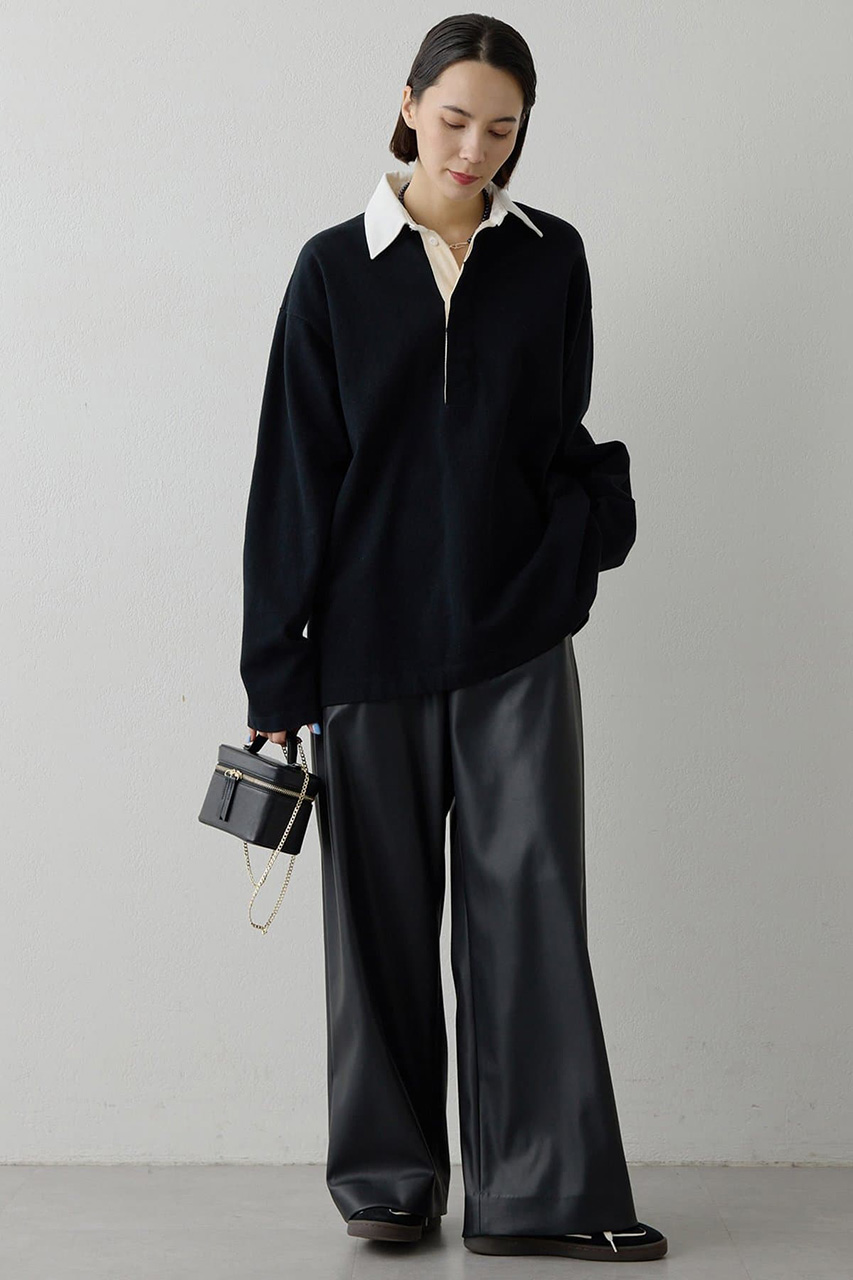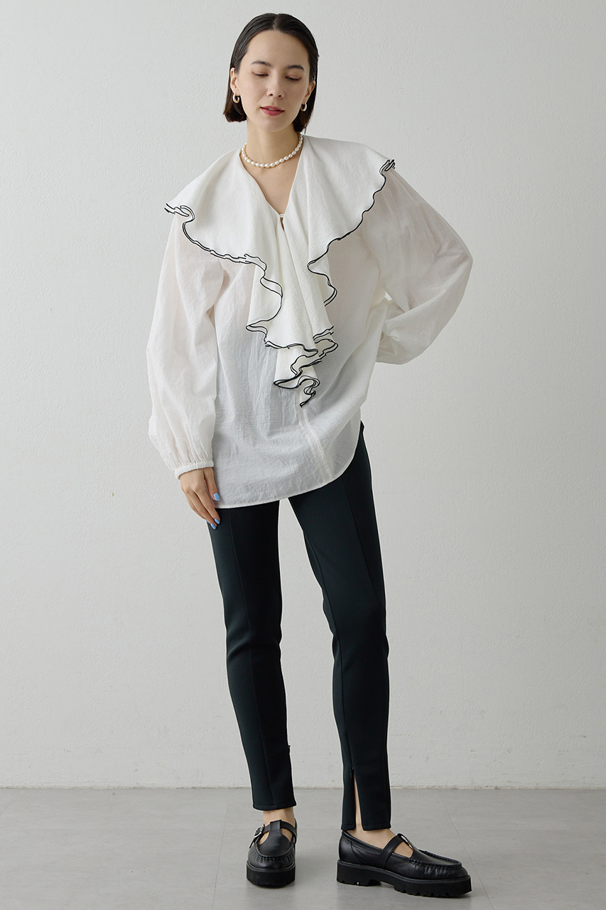 ローンフリルブラウス/ダンボールストレッチパンツ